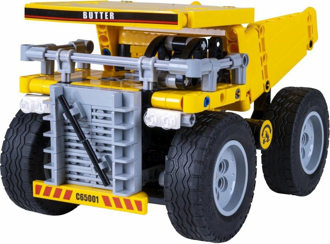 · Bauteile werden durch einfaches Zusammenstecken miteinander verbunden· Profilierte Gummireifen· Bedienknopf für Kippmulde· Bedienknopf für Lenkung· Schüttgut für Ladefläche· Fördert die Feinmotorik und technisches Verständnis