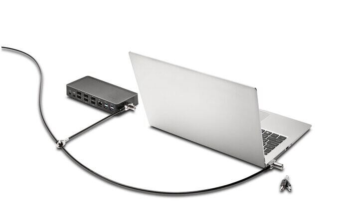 Kensington Universelles 3-in-1 Kabelschloss mit zwei Schließköpfen, Kensington, Schlüssel, Karbonstahl, Silber
