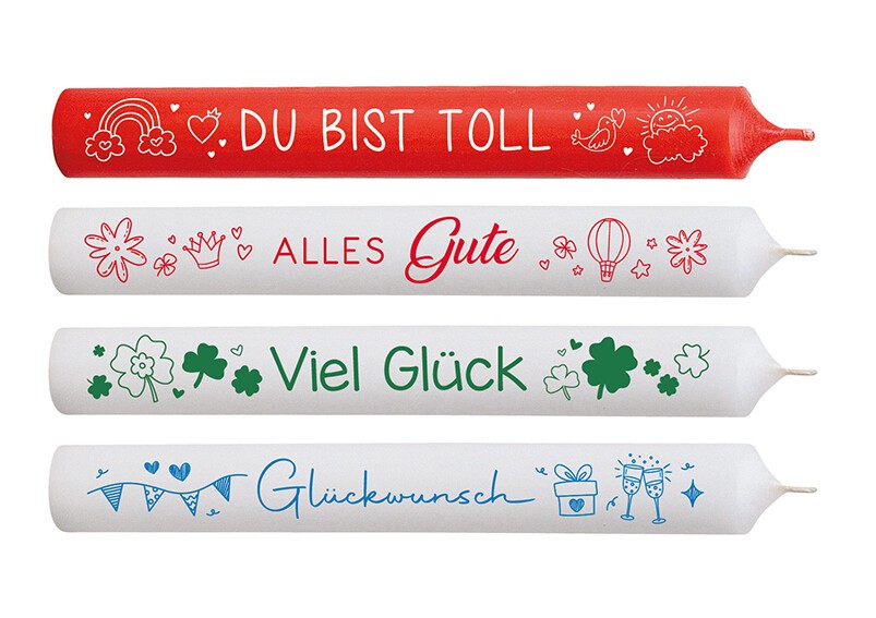 Kerzen mit Spruch 4-fach sortiert, Ø 2 cm, H 20 cm