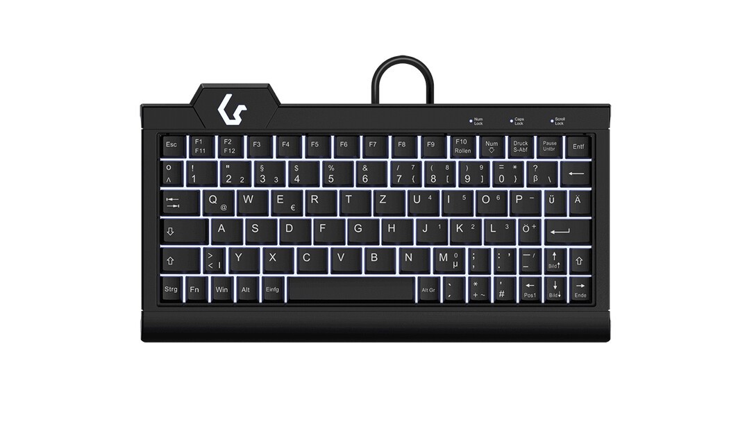 KeySonic KSK-3010ELC (DE), Super Mini Keyboard with backlit, USB/PS/2 Combo, black. Tastatur Formfaktor: Tenkeyless (80 - 87 %), Übertragungstechnik: Kabelgebunden, Geräteschnittstelle: USB, Tastatur-Switch: Membran Key Switch, Tastaturaufbau: QWERTZ, Tastatur - Tastenanzahl: 78. Typ der Hintergrundbeleuchtung: LED. Empfohlene Nutzung: Haus. Produktfarbe: Schwarz