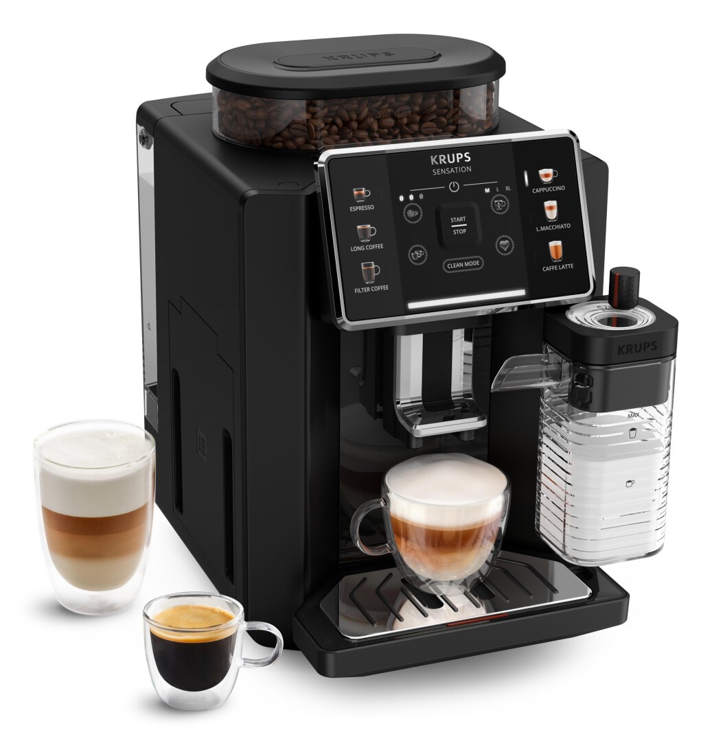 Genießen Sie mit den kompakten Krups Kaffeevollautomaten Sensation Milk, sämtliche Kaffee- und Milchspezialitäten wie Latte Macchiato und Cappuccino in Barista-Qualität - ganz einfach auf Knopfdruck..