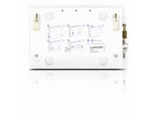 Weiße Wandhalterung zur einfachen & diebstahlsicheren Befestigung von LANCOM Geräten im Kunststoffgehäuse - inkl. Befestigungsmaterial - Sicherungsstangen - Vorhängeschloss & Bohrschablone - separater Wall Mount (LN) für Geräte mit LN- oder LX-Gehäuse erhältlich Gehäuse erhältlich