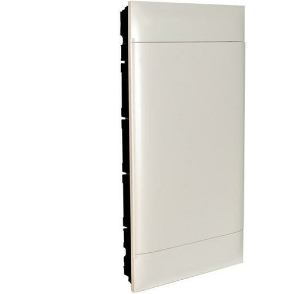Legrand Unterputzverteiler Practibox S, mit Kunststofftür, Signalweiß RAL 9003, Schutzart IP30 - IK07, 4-reihig, 12 Module/Reihe, Abmessung 765 x 328 x 103 (Höhe x Breite x Tiefe in mm), selbsverlöschend 650 °C, Komplettset inkl. Mauerkasten und Tür, inklusive N- und PE-Klemmen, Schutzklasse II. Türen rechst und links anschlagbar. Nach IEC 60670-24. Geeignet für Unterputzmontage.