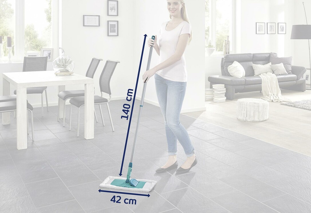 Wer den Bodenwischer Classic XL microfibre von Leifheit bestellt, der erleichtert sich die Reinigung der Böden enorm. Denn dieser verfügt über einen Teleskopstiel, der von 83 bis 138 cm verstellbar ist. So gewährleistet der Leifheit-Wischer rückenschonendes Putzen in optimaler Arbeitshöhe. Mit seiner Wischbreite von 42 cm sind so die Böden im Nu wieder sauber. Dank des flach abwinkelbaren Gelenks können selbst schwer zugängliche Stellen problemlos erreicht werden – zum Beispiel unter dem Bett oder Regal. Am Leifheit-Bodenwischer befindet sich eine Tuchklemme, an der Ein- oder Mehrwegtücher befestigt werden können. So ist er ideal für die gründliche Reinigung zwischendurch geeignet – egal ob auf Fliesen, Laminat oder Parkett. Um den Wischbezug zu entriegeln, braucht lediglich die Fußtaste betätigt werden. Lästiges Bücken ist hingegen nicht nötig. Wer den Leifheit Bodenwischer Classic XL microfibre kauft, der kann diesen selbstverständlich platzsparend verstauen. Denn er verfügt über eine praktische Aufhängeöse am Stiel.