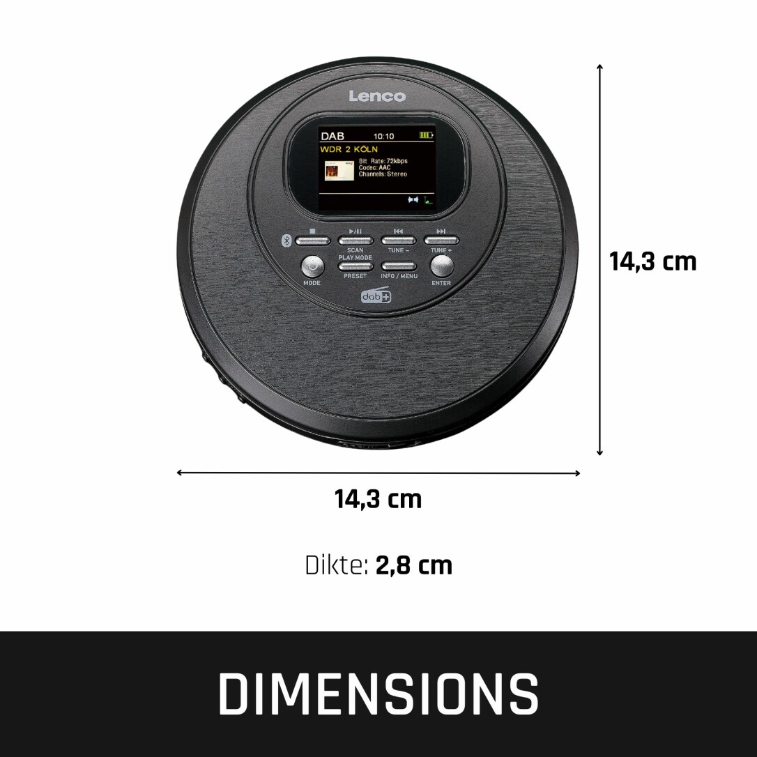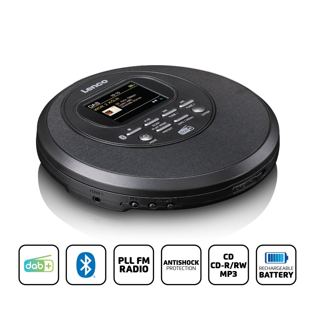 Der tragbare CD-Player Lenco CD-500BK ist ein kompakter CD-Player, den Sie leicht mitnehmen können. Das Gerät kann verwendet werden, um moderne MP3s und traditionelle CDs abzuspielen und ist auch mit Bluetooth 5.0 ausgestattet, was es Ihnen ermöglicht, Ihren CD-500BK mühelos mit Ihrem bevorzugten Bluetooth-Gerät zu verbinden. Darüber hinaus kann der Discman als DAB+ oder FM-Radio verwendet werden. Sie können 20 geräuschlose DAB+ Stationen und 20 FM-Stationen programmieren. Auf diese Weise können Sie sofort auf Ihre Lieblingssender zugreifen, indem Sie einfach auf eine Taste drücken. Mit Ihrem CD-Player erhalten Sie Ohrhörer und ein USB-C-Kabel.