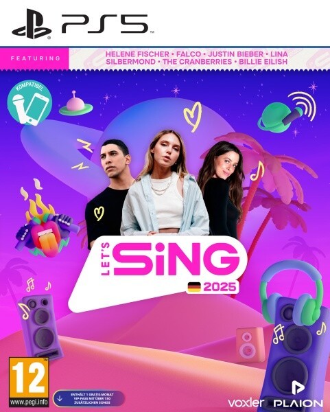*VIP-Pass erforderlich. Der VIP-Pass ist ein exklusives Angebot von Let\'s Sing 2025, das für eine zusätzliche monatliche Gebühr zu deinem Spiel-Account hinzugefügt werden kann. Keine automatische Verlängerung. Gutscheine mit dem Download-Code und für die kostenlose Testversion des VIP-Passes sind in der Box enthalten. Nur einmal einlösbar.