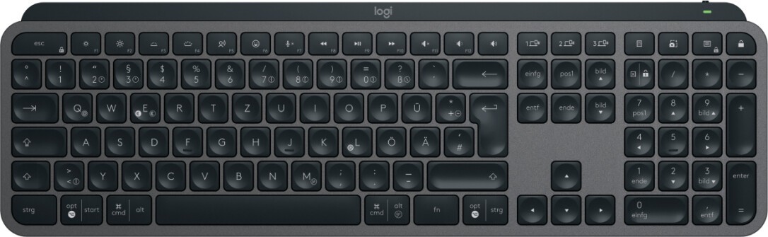 Logitech MX Keys S. Tastatur Formfaktor: Volle Größe (100%). Tastatur-Stil: Gerade. Übertragungstechnik: Kabellos, Geräteschnittstelle: RF Wireless + Bluetooth, Tastatur-Switch: Scherenschalter, Tastaturaufbau: QWERTZ. Typ der Hintergrundbeleuchtung: LED. Empfohlene Nutzung: Universal. Produktfarbe: Graphit