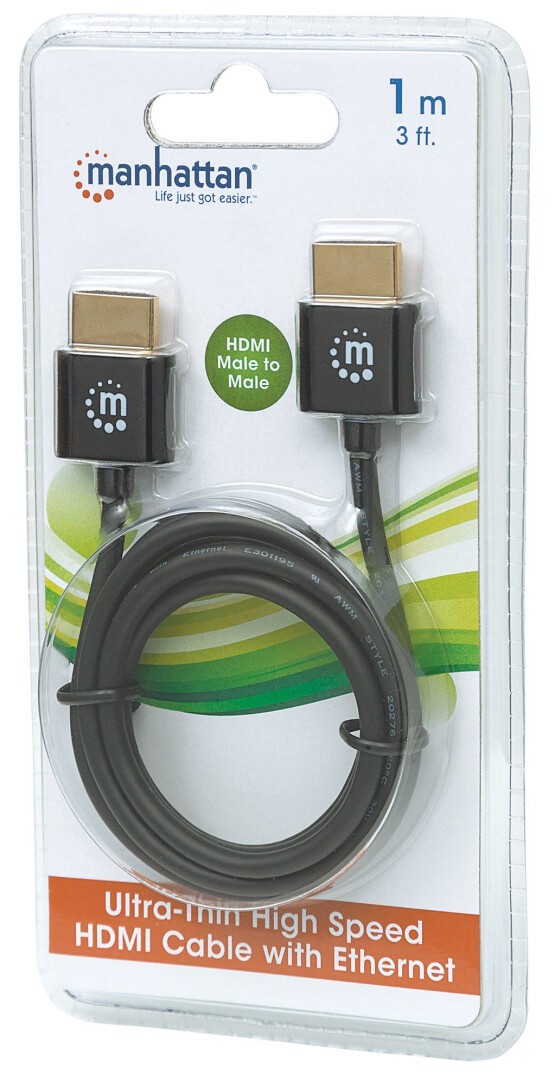 MANHATTAN HDMI-Kabel ultradünn mit Ethernet 1 m. schwarz (394352)