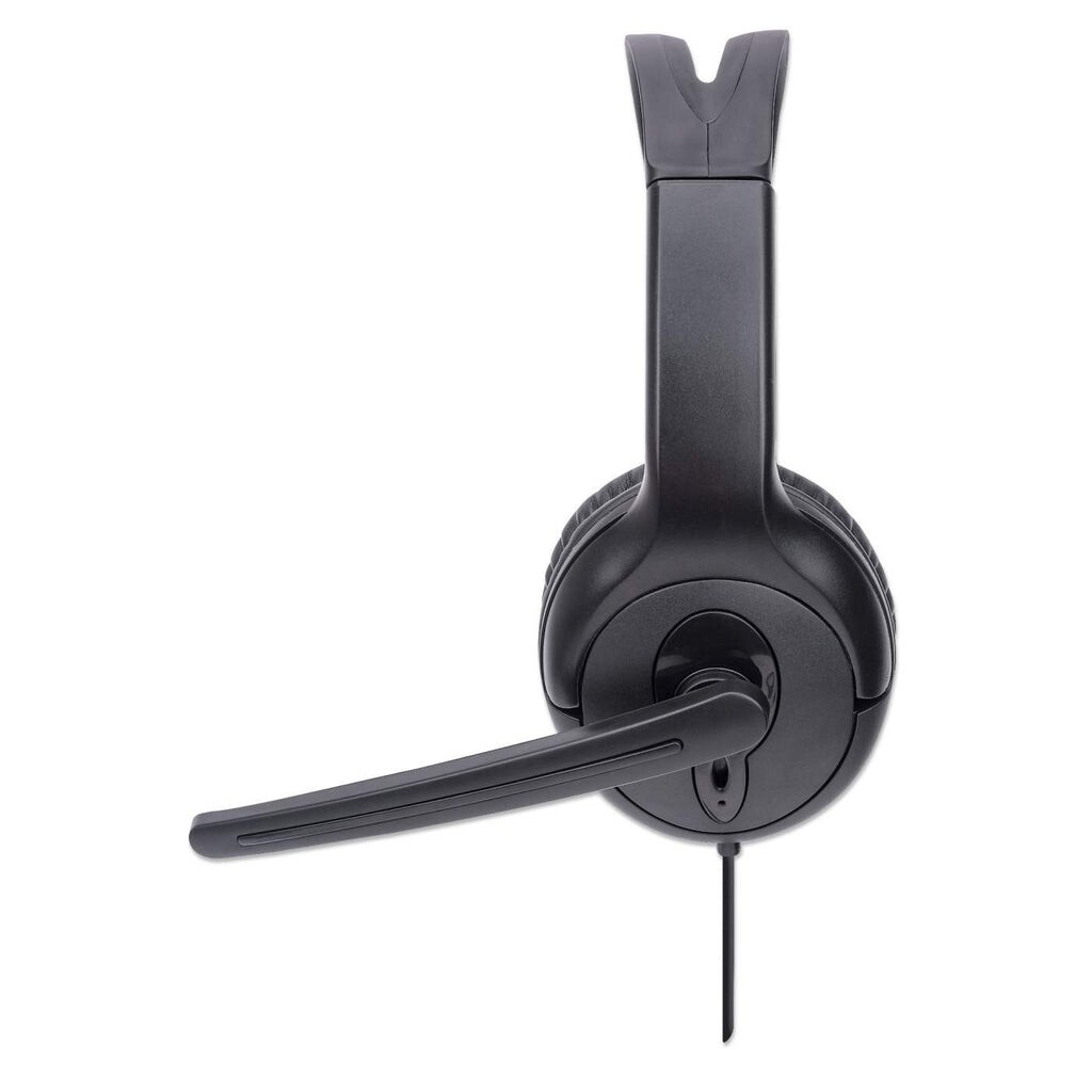Manhattan Mono USB-Headset, Ohrumschließendes Design (Over-Ear), Ohrmuschel einseitig, kabelgebunden, USB-A-Stecker, integrierte Lautstärkeregelung, verstellbares Mikrofon, schwarz, Kabelgebunden, Büro/Callcenter, 20 - 20000 Hz, 250 g, Kopfhörer, Schwarz