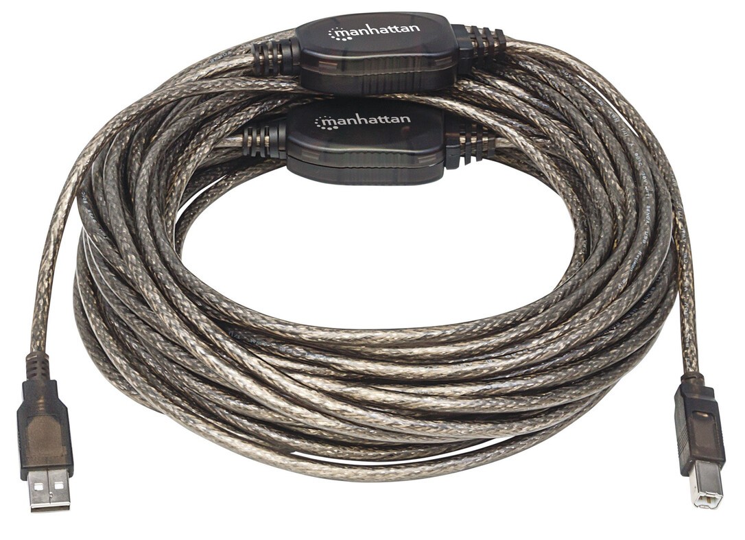 Manhattan Hi-Speed USB 2.0 aktives Anschlusskabel, USB A-Stecker auf B-Stecker, 15 m, schwarz, 15 m, USB A, USB B, USB 2.0, Männlich/Männlich, Schwarz