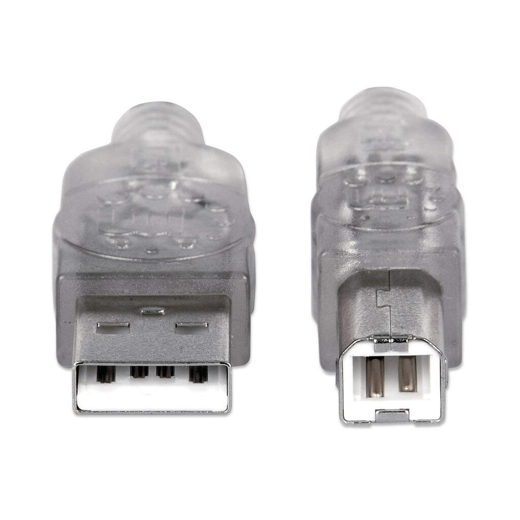 Manhattan Hi-Speed USB B Anschlusskabel, USB 2.0, Typ A Stecker - Typ B Stecker, 480 Mbps, 5 m, Silber, 5 m, USB A, USB B, USB 2.0, Männlich/Männlich, Silber