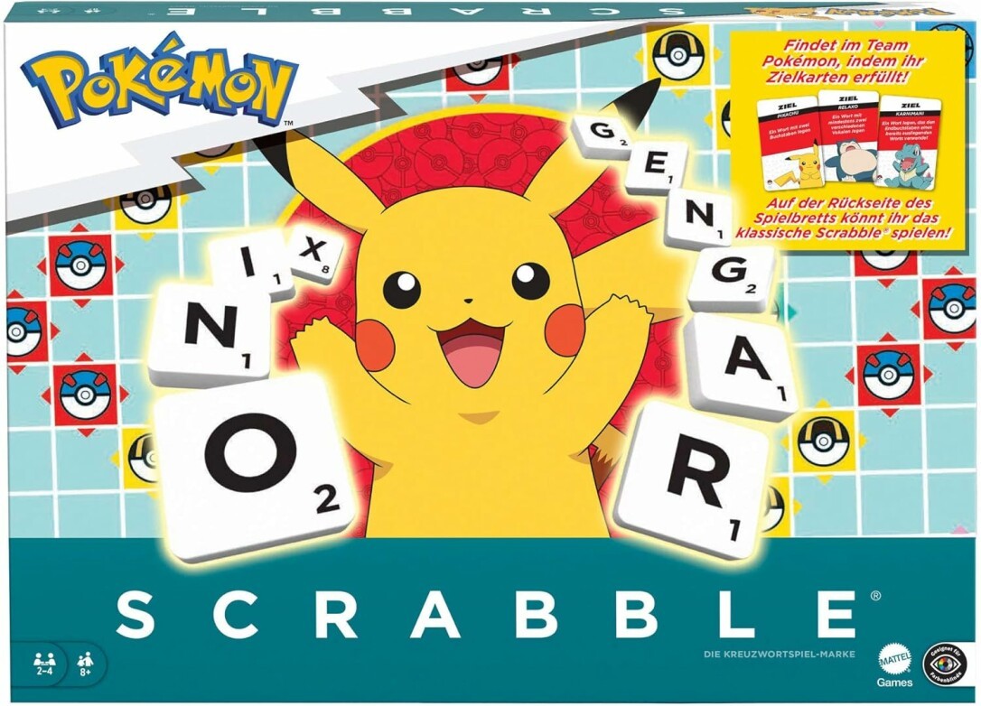 Bei Scrabble Pokémon wird als Team zusammengearbeitet, um Pokémon zu fangen, indem 50 Herausforderungskarten komplettiert werden.