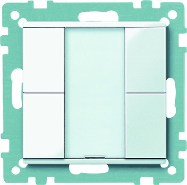 Im Design System M. Mit integriertem Busankoppler. Taster mit 4 Bedientasten, Betriebs-, Statusanzeige und Schriftfeld. Die Betriebsanzeige kann auch als Orientierungslicht verwendet werden. Das Gerät wird über eine Busanschlussklemme mit der Busleitung verbunden. Softwarefunktionen KNX: Schalten, Umschalten, Dimmen (ein-/zweiflächig), Jalousie (ein-/zweiflächig), Flanken löst 1,- 2-, 4- oder 8-Bit-Telegramme aus (Unterscheidung kurze/lange Betätigung), Flanken mit 2-Byte-Telegrammen (Unterscheidung kurze/lange Betätigung), 8-Bit-Schieberegler, Szenenabruf, Szenenspeicherung, Sperrfunktionen. Zubehör: ==>Beschriftungsbogen für Taster 6183.. Lieferumfang: Mit Putzschutzhaube. Mit Busanschlussklemme. Material: Thermoplast brillant. Farbe: polarweiß glänzend.