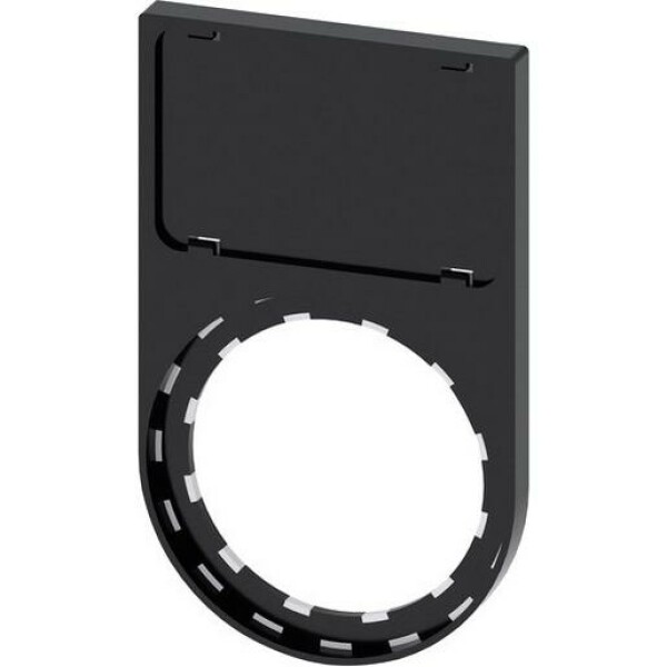 Der flache, schwarze Schildträger mit unten abgerundetem Rahmen ist für die Aufnahme von Bezeichnungsschildern mit den Maßen 17,5 mm x 27 mm ausgelegt. Er ist Teil des SIRIUS ACT Portfolios und dient der professionellen Kennzeichnung von 22 mm Befehls- und Meldegeräten. Die Montage wird durch ein innovatives Aufschnappkonzept erheblich vereinfacht, sodass sie schnell, werkzeuglos und mit nur einer Hand erfolgen kann. Für die Befestigung genügen nutfreie Löcher, da ein hundertprozentiger Verdrehschutz bereits integriert ist. Wie die gesamte Produktreihe ist auch der Schildträger robust und für den industriellen Einsatz sowie für die Verwendung im Außenbereich konzipiert. Er ist widerstandsfähig gegen Staub, Öle und aggressive Laugen, was einen zuverlässigen Betrieb der gekennzeichneten Geräte sicherstellt.