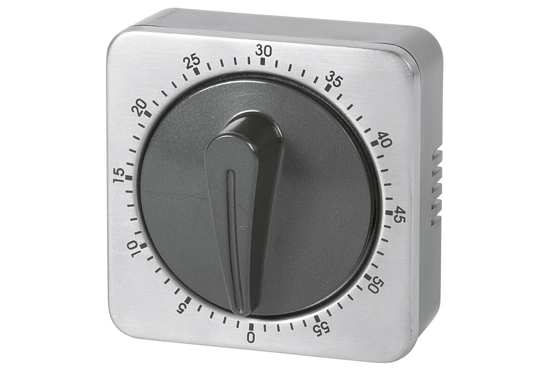 Dank des mechanischen Kurzzeitmessers von my basics steht einem perfekt gekochten Ei oder gebackenen Kuchen nichts im Wege. Die Edelstahl-Uhr mit Kunststoffgriff hat eine Messdauer von 60 Minuten und lässt ein akustisches Signal ertönen, sobald die Zeit abgelaufen ist. Ein Magnet an der Rückseite ermöglicht ein Befestigen des Timers am Kühlschrank. Auch die vier integrierten Gummifüße verhindern ein Wegrutschen auf der Arbeitsfläche der quadratischen Uhr mit einer Kantenlänge von 6,8 cm.