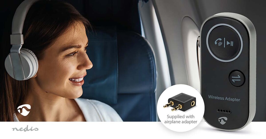 Volle Unterstützung für die Unterhaltung im Flugzeug. Der Bluetooth®-Adapter mit Headset-Adapter für Flugzeuge ist die perfekte Lösung für zwei Aux-Entertainment-Funktionen im Flugzeug. Schließen Sie zwei kabellose Kopfhörer wie die Airpods im Flugzeug an, teilen Sie Musik und Filme mit Freunden und verbringen Sie die langweilige Zeit im FlugzeugErleben Sie die Freiheit der kabellosen Audioübertragung mit dem Nedis Compact & Portable Wireless 2-in-1 Bluetooth® Audio Adapter. Ob zu Hause, im Auto oder auf einem Flug, bleiben Sie mühelos mit Ihren Lieblingsklängen verbunden.