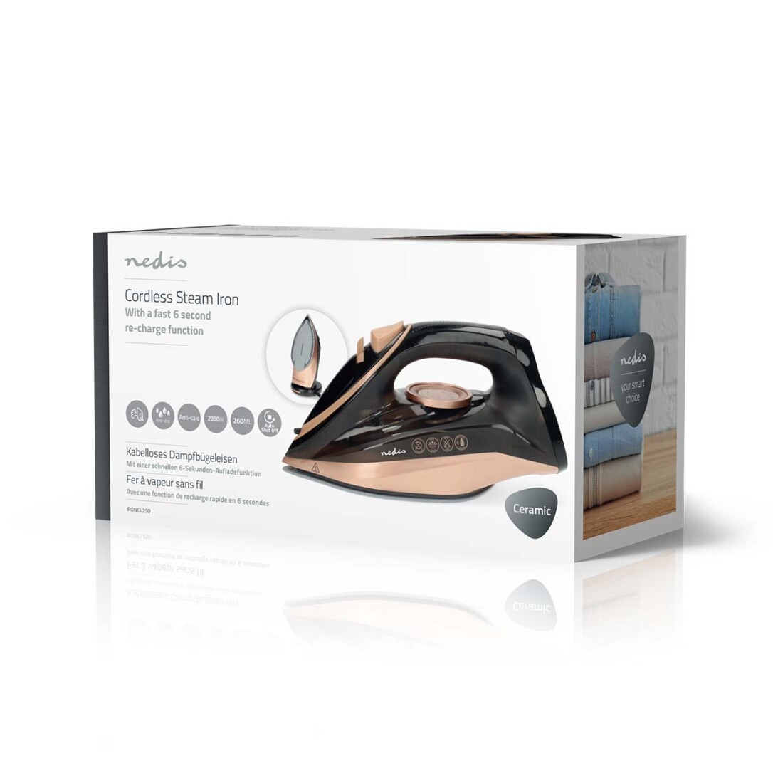 Erleben Sie müheloses Bügeln mit dem kabellosen Dampfbügeleisen von Nedis, das für absolute Bewegungsfreiheit und optimalen Komfort entwickelt wurde. Mit einer starken Leistung von 2200 W heizt dieses leichte Dampfbügeleisen schnell auf und bietet hervorragende Leistung für glatte, faltenfreie Kleidung im Handumdrehen.Kabelloses und leichtes Design