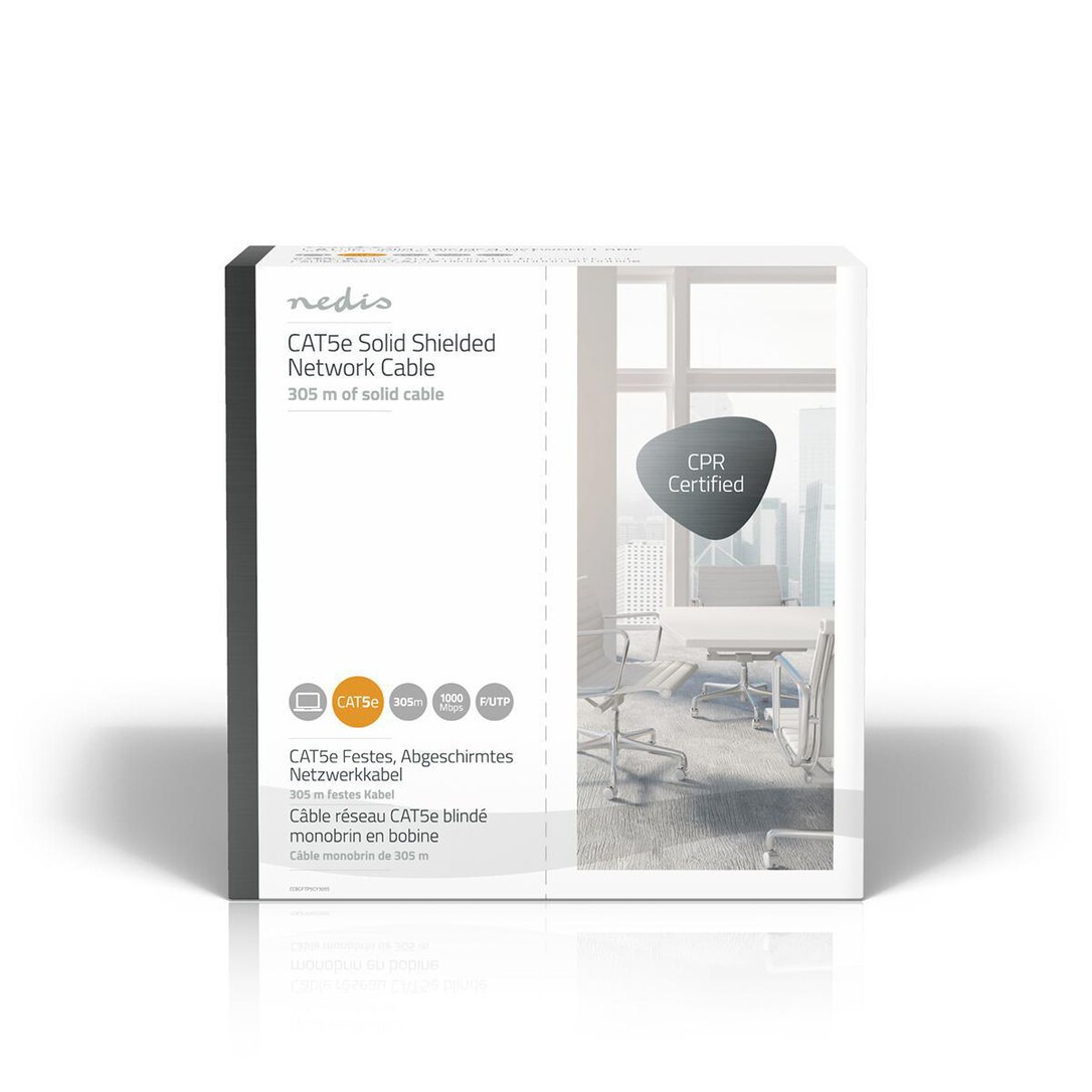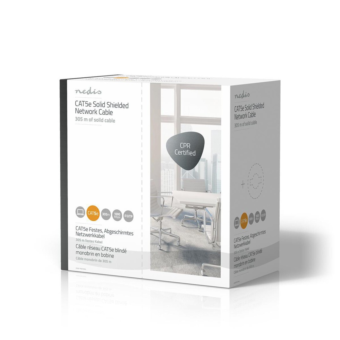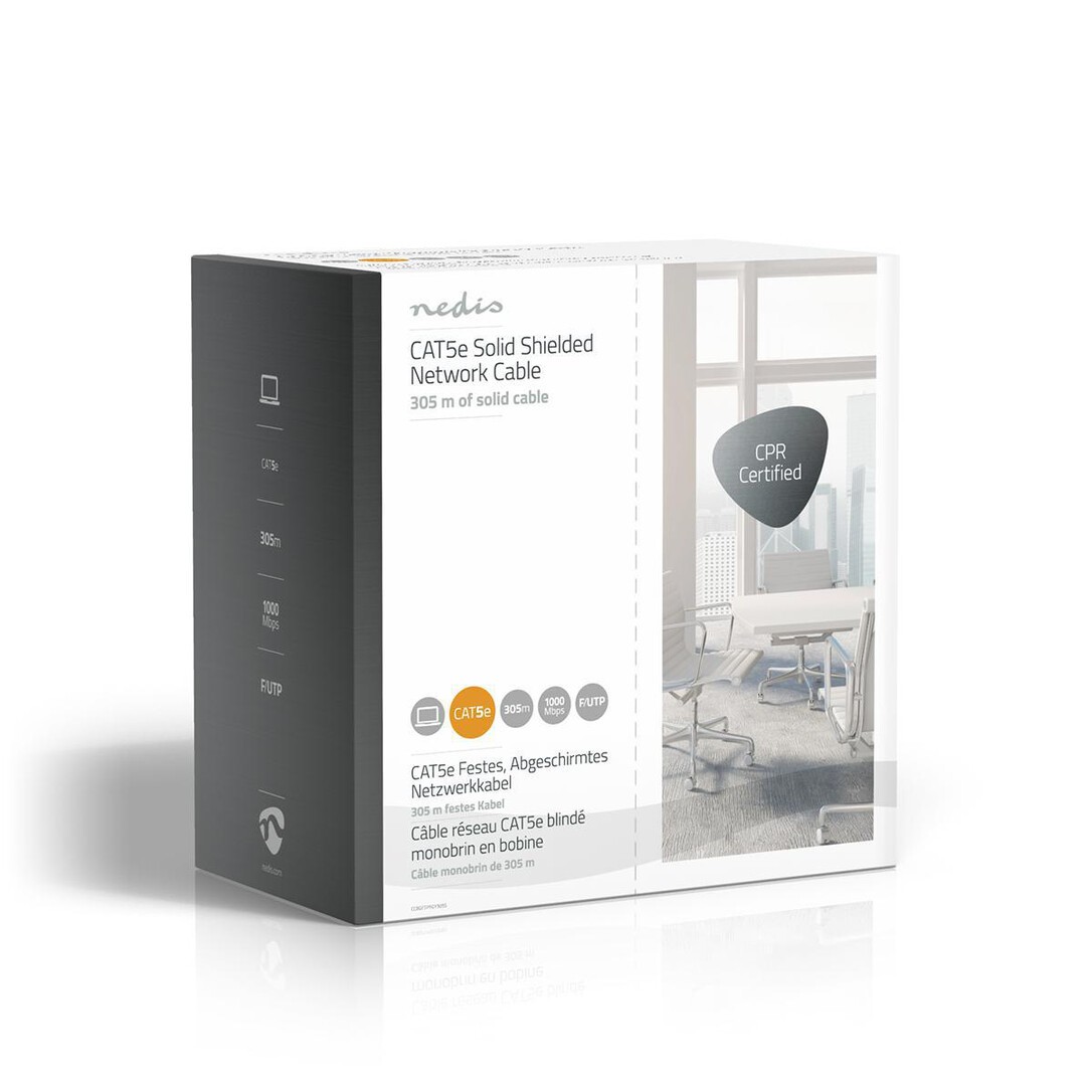Nedis CAT5e Netzwerkkabel Rolle / Solid / F/UTP / Kupfer / 305 m / Innen / Rund / PVC / Grau / Pull Box - ausziehbar