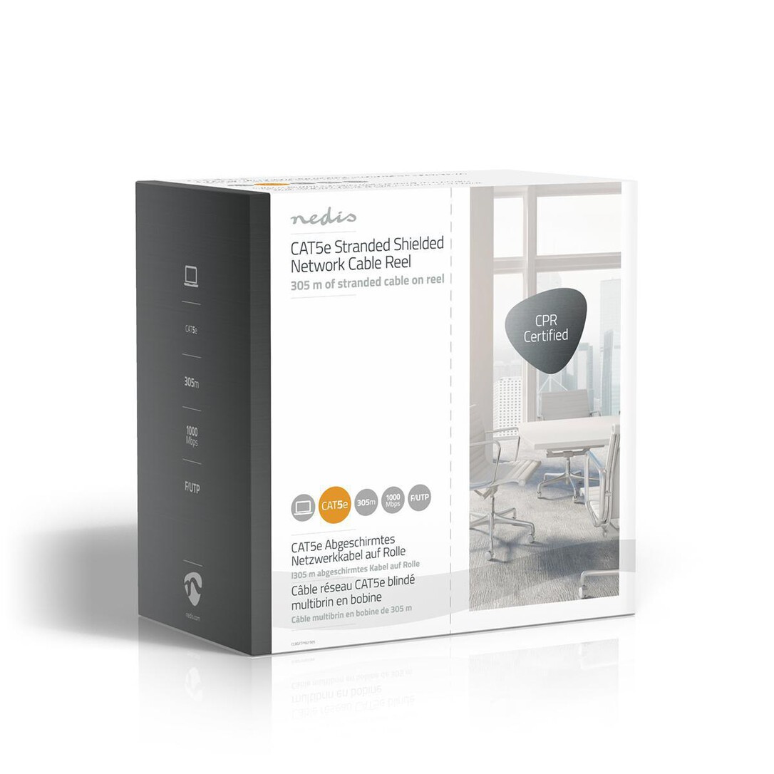 Nedis CAT5e Netzwerkkabel Rolle / Stranded / F/UTP / Kupfer / 305 m / Innen / Rund / PVC / Grau / Pull Box - ausziehbar