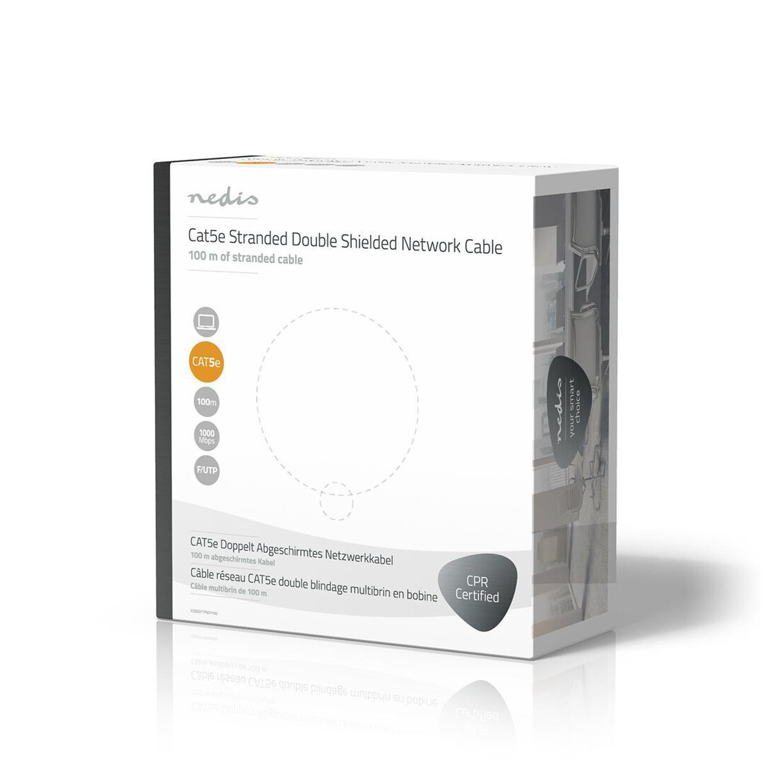 Nedis CAT5e Netzwerkkabel Rolle / Stranded / SF/UTP / Kupfer / 100 m / Innen / Rund / PVC / Grau / Pull Box - ausziehbar