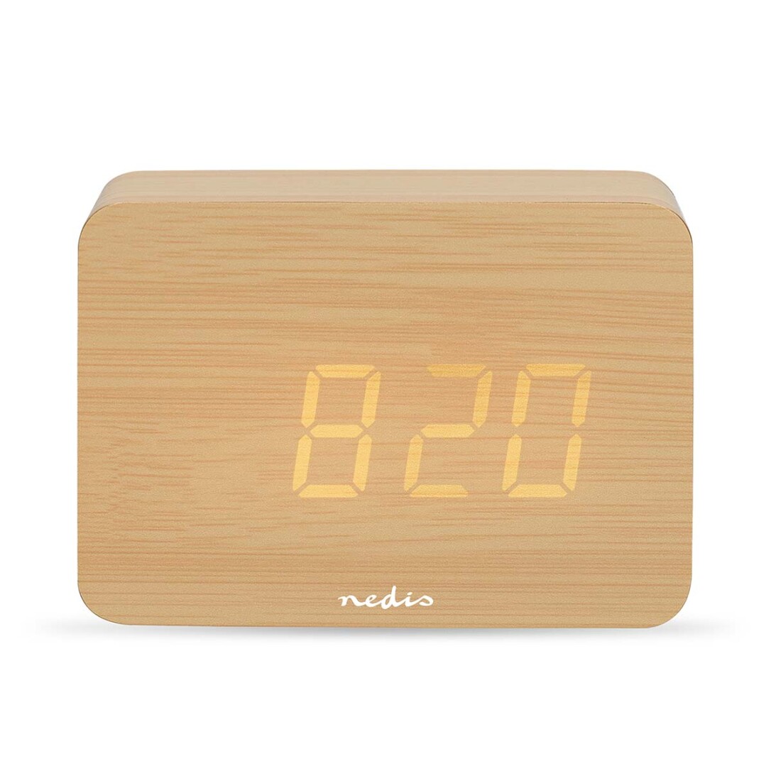 Nedis Digital-Schreibtisch-Wecker / LED / Backlight / Snooze-Funktion / Datumsanzeige / Raumtemperatut / Holz