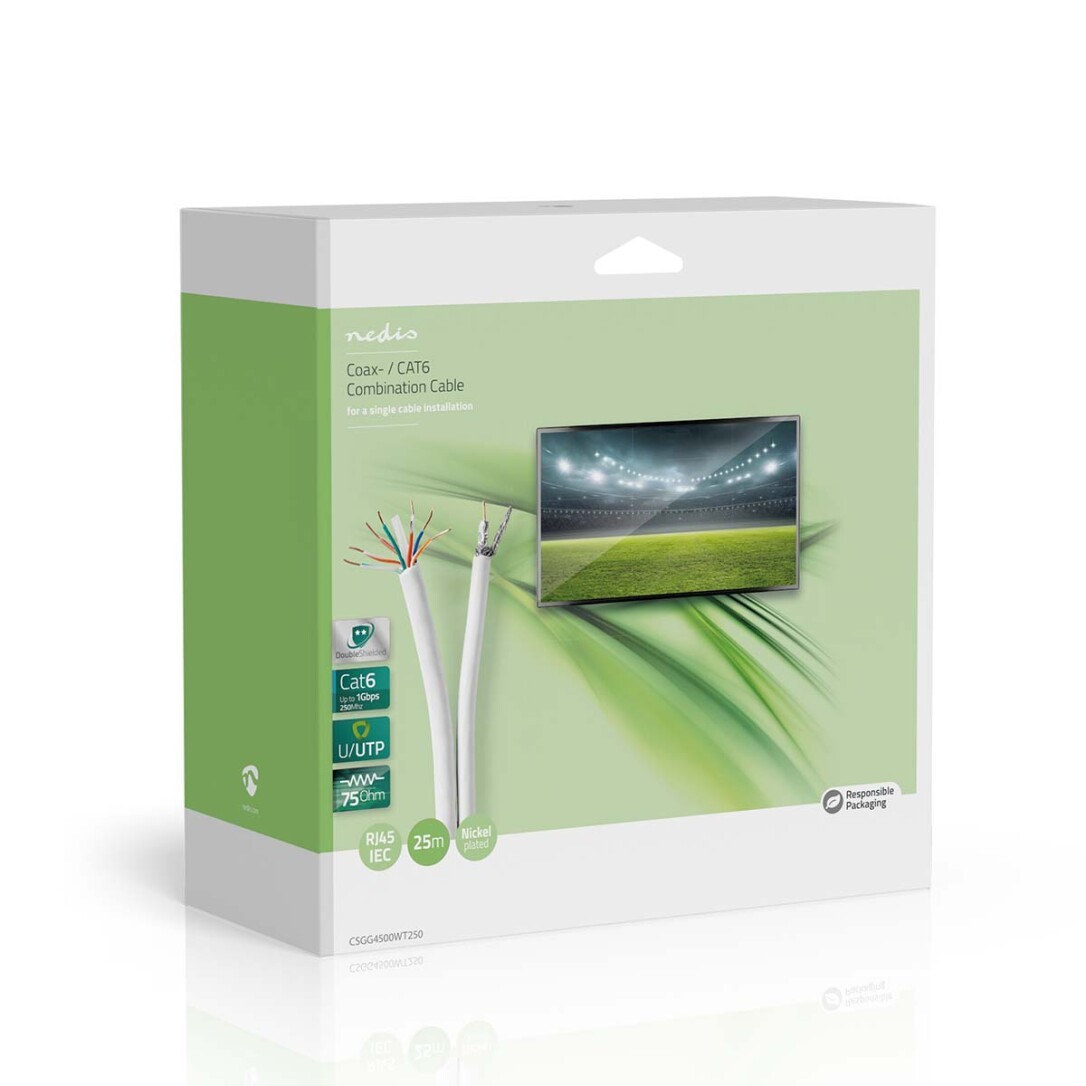Nedis IEC (Koax) CAT6 Kombikabel auf Rolle / RG58 / 75 Ohm / 3-fach geschirmt / ECA / 25.0 m / Rund / Weiss / Kartonverpackung