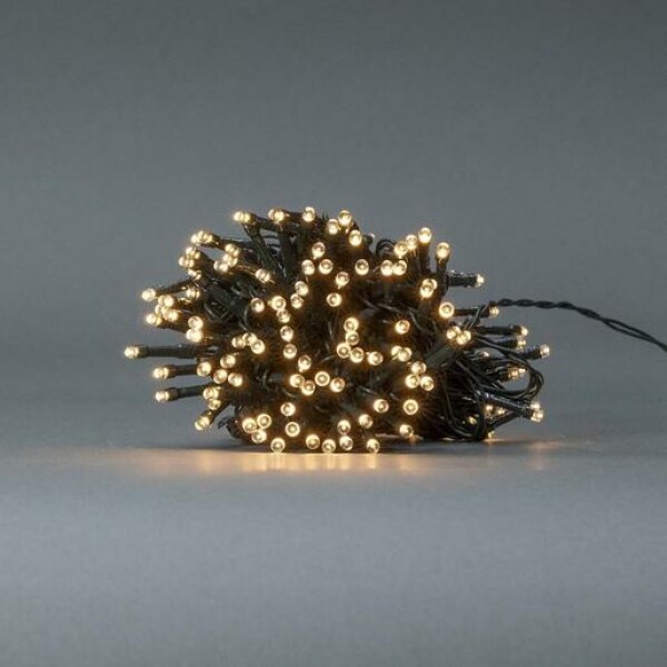 Die schwarze Farbe des Kabels fügt sich dezent ein und passt zu jedem Baum oder Hintergrund, ohne die Optik zu stören. Die Lichterkette umfasst insgesamt 192 LED-Leuchten, die in Abständen von 7,5 Zentimetern voneinander angebracht sind. Mit einer Gesamtlänge von 14,9 Metern wird Ihnen diese Lichterkette nie zu kurz sein. Die Lichterkette kann sowohl im Innen- als auch im Außenbereich verwendet werden.