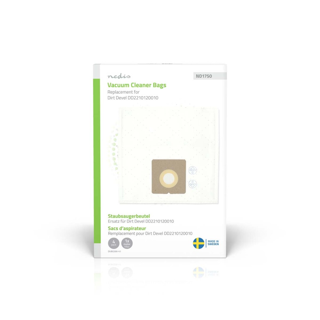 Nedis Staubsaugerbeutel / 4 Stück / Synthetik / Meist verkauft für: Dirt Devil Swiffy M 1550 - 1556 Series / Weiss
