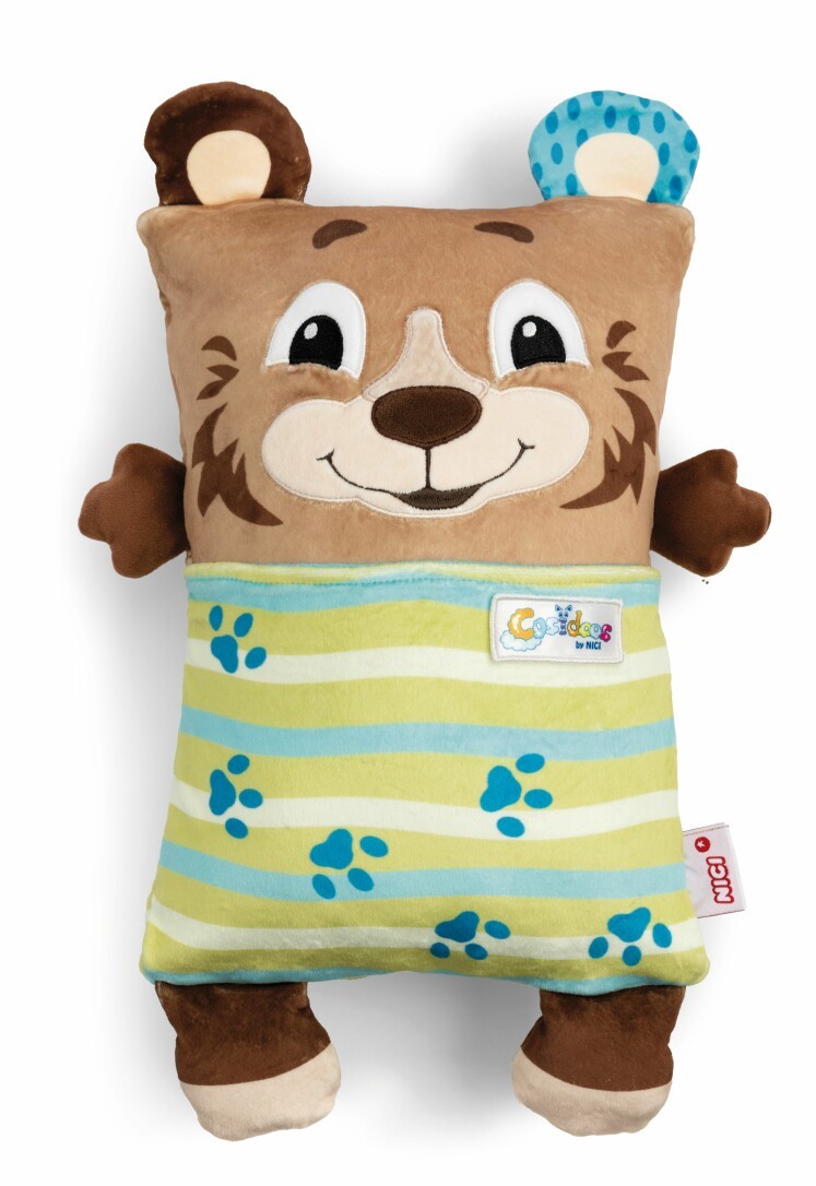 Der Cosidoos Bär ist ein flauschiges Kuscheltier, das sich mühelos vom fröhlichen Tagesbegleiter in ein beruhigendes Schlaftier und Kissen verwandeln lässt. Der braune Bär verbindet Spielspaß und Geborgenheit und fördert gleichzeitig das Verständnis für den Wechsel von Tag und Nacht. So wird der Übergang zur Schlafenszeit zu einem echten Highlight. Mit einem einfachen Handgriff lässt sich der Bär mühelos umdrehen und so in Farbe und Design der Tageszeit anpassen. Tagsüber animiert der Cosidoos Bär zum Spielen und regt die Fantasie an, während er nachts als sanfter Begleiter für einen ruhigen Schlaf sorgt. Seine weichen Taschen eignen sich perfekt, um kleine Schätze oder wichtige Dinge zu verstauen. Das Wendewunder aus hochwertigem, superweichem NICI Plüsch ist mehr als nur ein Spielzeug - es ist ein treuer Freund, der die Übergänge zwischen Spiel und Ruhe fließend gestaltet.
