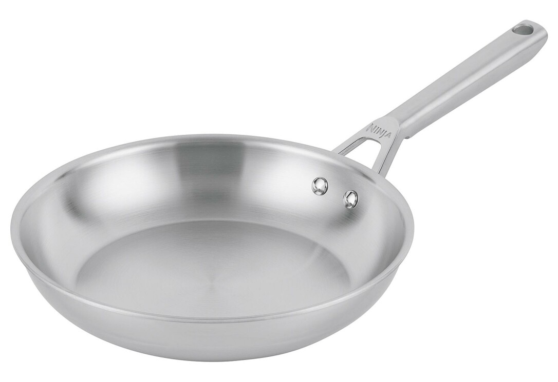 NINJA Bratpfanne "EverClad" Ø 28 cm, H 8,35 cm, aus Edelstahl. Fassungsvermögen: 2,6 l. Für alle Herdarten geeignet, kompatibel mit Ø 20,2 cm Induktionsring. Ofenfest bis 315 °C, spülmaschinengeeignet.