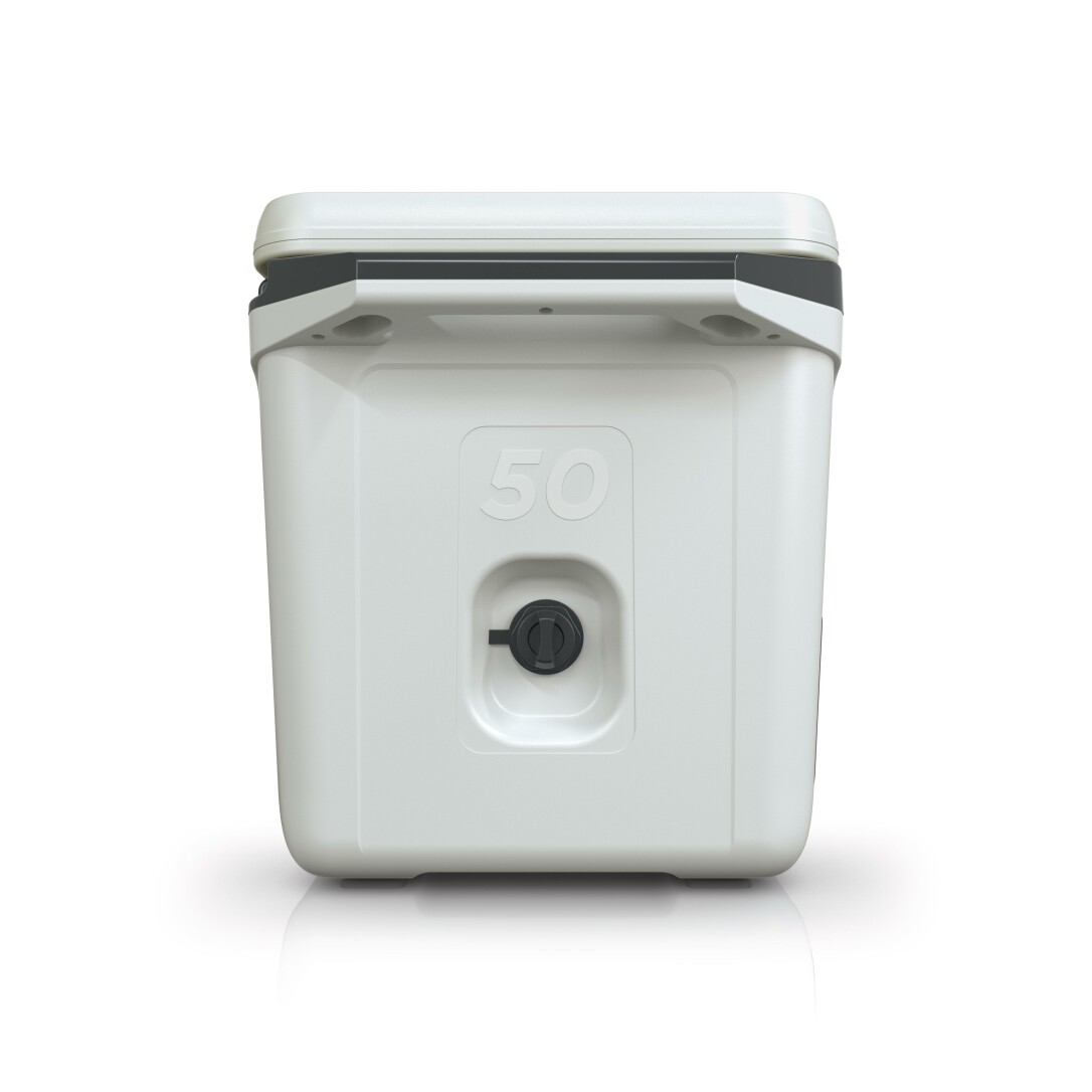 Große Fassungsvermögen von 47 L: Platz für bis zu 80 Dosen (ohne Eis) oder 50 Flaschen, Lagert tagelang Lebensmittel trocken bei Temperaturen unter 4,5°C, Leicht zu transportieren mit robusten geformten Tragegriffen, abschließbarem Deckel und Schubladenriegel