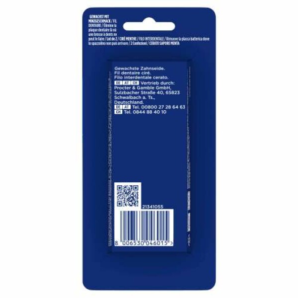 Effektive Reinigung von Zahnzwischenräumen mit Oral-B Essential Zahnseide. Diese gewachste Zahnseide gleitet leicht zwischen den Zähnen und selbst in engen Räumen, dank der starken reißfesten Textur. Sie unterstützt die Reinigung von Stellen, die durch Zähneputzen alleine nicht erreicht werden können und sorgt für eine Reduzierung von Plaque. Die Zahnseide kann sowohl morgens als auch abends als Teil der Mundhygiene-Routine verwendet werden, um gesundes Zahnfleisch und gesunde Zähne zu erhalten. Unverzichtbar für eine gründliche tägliche Zahnreinigung. Oral-B ist die #1 Zahnbürstenmarke, die weltweit am häufigsten von ZahnärztInnen empfohlen wird*. *Basierend auf Umfragen einer repräsentativen weltweiten Stichprobe von ZahnärztInnen, durchgeführt für P&G