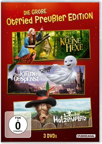 Otfried Preußler hat mit seinen Büchern Klassiker der Kinderliteratur geschaffen, die bis heute Generationen von Kindern begeistern. Neben der kleinen Hexe sind das kleine Gespenst und der Räuber Hotzenplotz Otfried Preußlers bekannteste Figuren. Während das kleine Gespenst damit zu kämpfen hat, sich von einem Taggespenst wieder in ein Nachtgespenst zu verwandeln und die kleine Hexe innerhalb eines Jahres alle Zaubersprüche aus dem großen magischen Buch auswendig lernen muss, um zu beweisen, dass sie eine gute Hexe ist, sind der Kasperl und der Seppel auf der Jagt nach dem Räuber Hotzenplotz, um der Großmutter ihre Kaffeemühle wiederzubringen. (3 DVDs) Der mehrfach ausgezeichnete Schriftsteller Otfried Preußler gilt als einer der prägendsten Kinderbuchautoren überhaupt. Anlässlich seines 100-jährigen Geburtstags erscheinen nun drei seiner bekannten Werke in einer Edition. Die drei Erfolgsfilme, DAS KLEINE GESPENST (2013), DIE KLEINE HEXE (2018) und DER RÄUBER HOTZENPLOTZ (2022) entstanden aus einer Zusammenarbeit zwischen der Münchner Produktionsfirma Claussen+Putz Filmproduktion und der Schweizer Zodiac Pictures als Ko-Produzent. Alle drei Filme in grandioser Besetzung und mit namhaften Schauspieler*innen wie Karoline Herfurth, Luna Wedler und Uwe Ochsenknecht waren unter den besucherstärksten Filmen des jeweiligen Jahres gelistet. EXTRAS: Das kleine Gespenst: Interview mit Cast und Crew, Wie das kleine Gespenst gemacht wurde, Hinter den Kulissen, Kinotrailer Die kleine Hexe: Making of, Interviews, Geschnittene Szenen, Die Spezialeffekte, Social Media Clips, Die Musik zum Film Der Räuber Hotzenplotz: Making of, Die Story, 60 Jahre Hotzenplotz, Kinotrailer