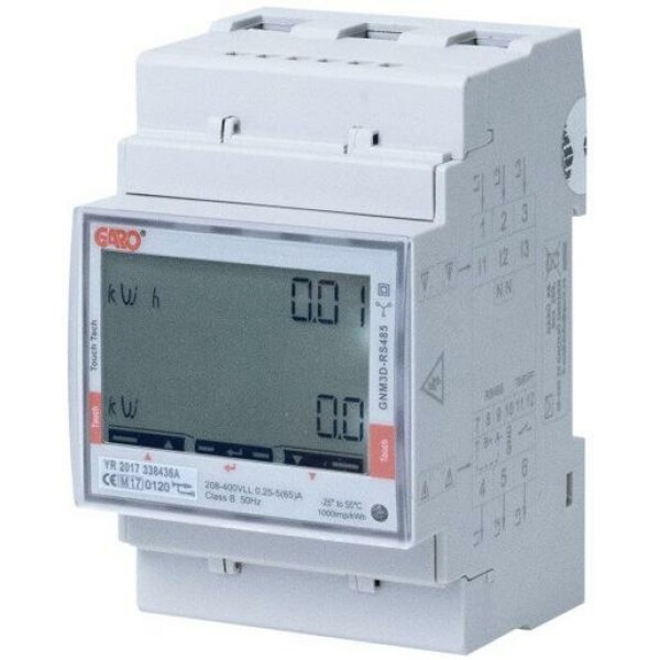 Dreiphasen-Energiezähler für Messwandler 5A, 400V, 50/60Hz, bidirektional Genauigkeitsklasse: B Energieart: Wirk- und Blindleistung Anzeigeart: digital LCD mit Hintergrundbeleuchtung Menügeführt über Touch-Display Montageart: Einbau Breite in Teilungseinheiten: 3TE BxHxT (mm): 54x90x63 Ausführung der Schnittstelle: Modbus RS485 Schutzart: IP51 Umgebungslufttemperatur: -25°C bis +65°C.
