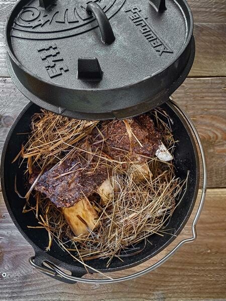 Durch die hervorragenden Eigenschaften des Gusseisens und die spezielle Oberflächenstruktur wird die Wärme effizient gespeichert und weitergeleitet. Die vorbehandelte Oberfläche (seasoned finish) macht ein erstmaliges Einbrennen unnötig und der robuste Feuertopf kann sofort verwendet werden. Im Freien wird er auf dem offenen Feuer oder mit Holzkohle verwendet. Der erhöhte Rand des Deckels ermöglicht es, Glut oder Holzkohle auch auf dem Feuertopf zu platzieren. So wird der Feuertopf von allen Seiten beheizt und eignet sich beispielsweise auch zum Brot backen.