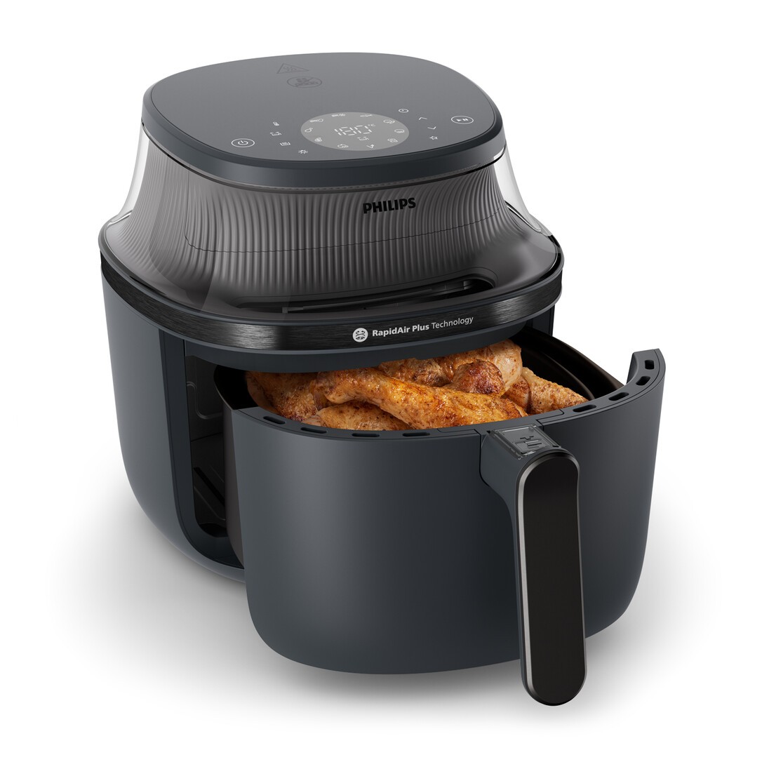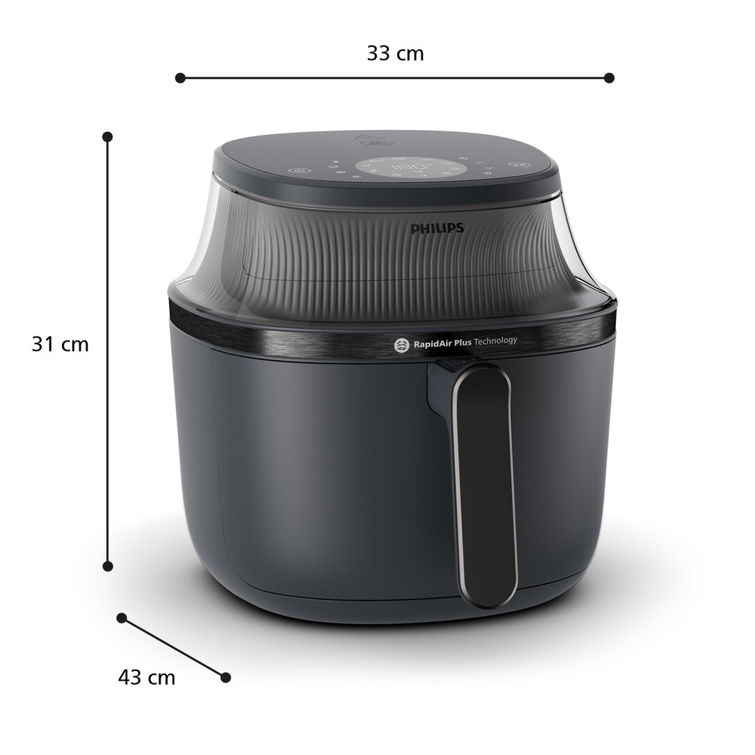 Philips 3000 series Airfryer 6,2 l. Produkttyp: Heißluftfritteuse, Fassungsvermögen: 6,2 l, Friteusenkapazität: 1 kg. Bauart: Einzelbild, Produktfarbe: Schwarz, Steuerung: Berührung. Display-Typ: LED. Leistung: 1700 W, AC Eingangsspannung: 220-240 V, AC Eingangsfrequenz: 50 Hz. Breite: 324 mm, Tiefe: 436 mm, Höhe: 303 mm