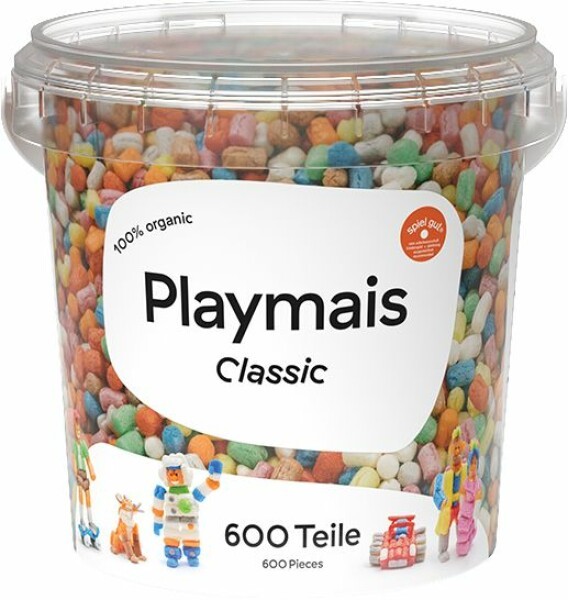 Playmais BASIC 600 Eimer. Enthält ca. 600 PlayMais Classic, Anleitung und Zubehör. Für Kinder ab 3 Jahren. Mehr als 9 Stunden Bastelspass.