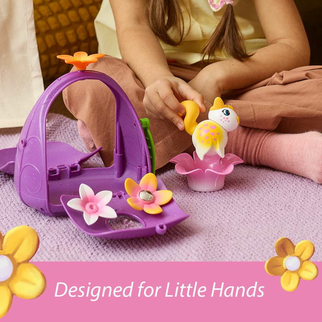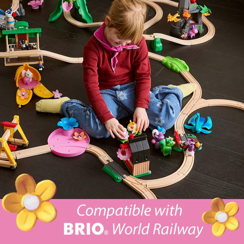 Das Blumenhaus von Daisy ist Teil der magischen Welt von BRIO Flora und gleichzeitig eine Tasche. Durch den praktischen Griff ist es ideal zum Mitnehmen, ob auf Reisen, zu Freunden oder einfach nur in ein anderes Zimmer. Es lässt sich von beiden Seiten öffnen und verwandelt sich so in ein geräumiges Spielhaus für Daisy. Mit den Blüten und Blättern kann das Haus nach Lust und Laune dekoriert werden. Das Spielset ist mit allen BRIO Flora-Spielzeugen kompatibel, bietet kreatives SpielvergnügenÜber BRIO Flora: Bei BRIO Flora erkundet eine Gemeinschaft kleiner Freunde eine magische Blumenwelt voller farbenfroher Abenteuer. Jedes Spielset bringt Kindern die Freude an der Natur nahe und lässt sie Blumen, Blätter und Beeren sammeln, während sie ihre eigenen fantasievollen Geschichten in einer bezaubernden, unbegrenzten Welt spielt.36236 BRIO Flora Blumenhaus zum Mitnehmen enthält 7 Teile: 1x Flora Figur (Daisy), 1x Mitnehm-Blumenhaus, 1x kleine gelbe Blume, 1x Blatt, 2x kleine Verbindungsblumen, 1x rosa Blume.
