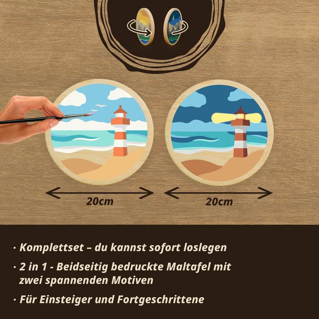 CreArt Malen nach Zahlen auf Holz: die Faszination des Malens nach Zahlen in einer völlig neuen Dimension auf hochwertigem Holz (Durchmesser 20 cm)! Diese einzigartige Art des Malens verbindet den Charme natürlicher Materialien mit der meditativen Ruhe und Präzision des klassischen Malen-nach-Zahlen-Prinzips. Perfekt für Anfänger und erfahrene Künstler, ab 12 Jahren, bietet unser Malen nach Zahlen auf Holz ein unvergleichliches Erlebnis. - An die Pinsel, fertig, los! Mit unseren All-in One Sets zur selbst kreierten Holz-Deco-Art - 2 Holzpinsel in verschiedenen Stärken machen das Ausmalen flexibel - Der praktische Aufhänger macht das Kunstwerk zum Deko-Element für die Wand - Beim Ausmalen des Motivs Meer entspannen und Stress abbauen! So schön war Malen auf Holz noch nie! - Das Motiv Meer ist auch für Malen nach Zahlen CreArt Einsteigerinnen & Einsteiger geeignet