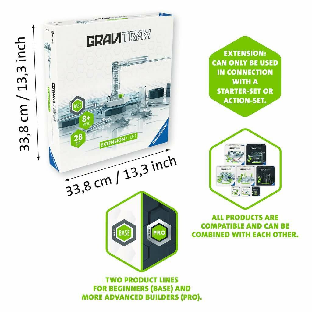 - Kombiniere den Lift und die zusätzlichen Bauelemente mit deinem GraviTrax Starter-Set für noch mehr Kugelbahn-Action.
