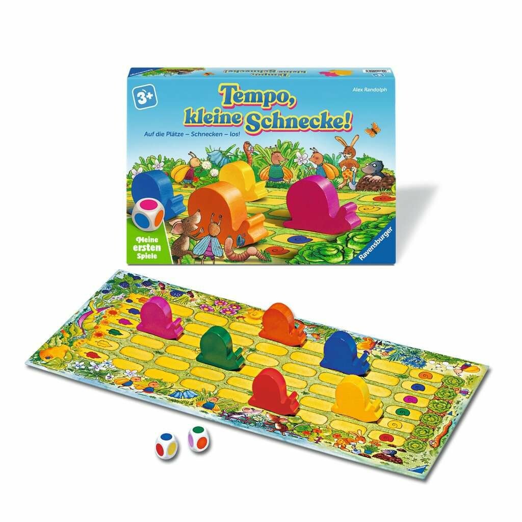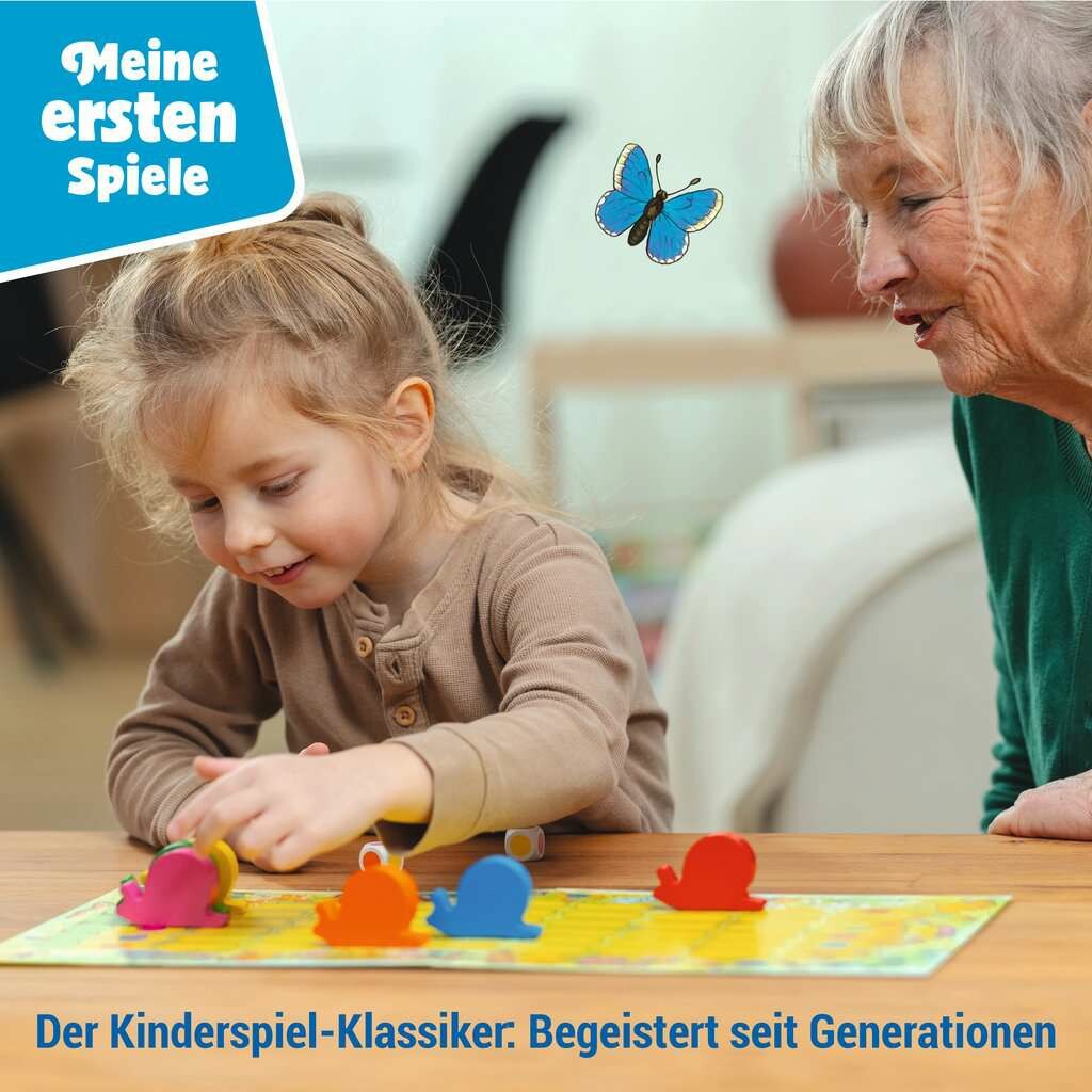 Auf die Plätze Schnecken los! Wer hat beim Rennen zu den grünen Salatköpfen die Fühler vorn? Der Spieler, der an der Reihe ist, würfelt mit beiden Farbwürfeln und zieht die passenden Schnecken jeweils ein Feld vor. Jetzt die Würfel an den nächsten Spieler geben, und schon geht der Wettlauf weiter. Das Spiel ist zu Ende, wenn eine Schnecke bei den Salatköpfen ankommt. Diese Schnecke hat gewonnen und darf sich satt fressen. Der beliebte Klassiker mit 6 hochwertigen Holzschnecken!Die Reihe ''Meine ersten Spiele ist mit besonders dickem und griffigem Material ausgestattet und geht gezielt auf die Bedürfnisse und Fähigkeiten der Klein- und Vorschulkinder ab 2 Jahren ein.