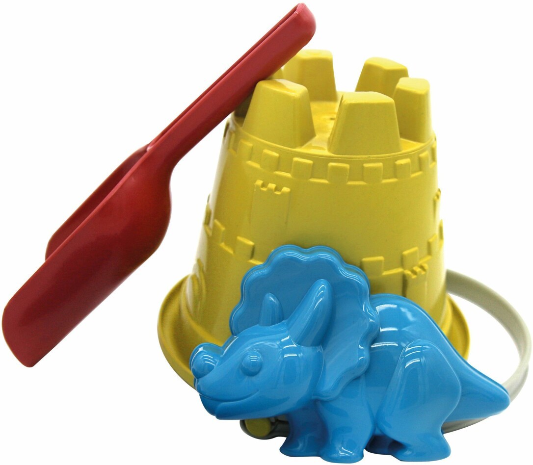 Für kleine Entdecker! reGowi ist die neue Recycling-Spielzeuglinie von GOWI, die mindestens zu 95 % mit PCR-Kunststoff (Post Consumer Recycled Plastic) gefertigt wird. Die Recycling-Spielzeuglinie entspricht hohen Sicherheitsstandards, ist langlebig, stabil und kann durch bewährte GOWI Qualität überzeugen. Wie funktioniert Recycling? Der gesammelte Kunststoffabfall wird zerkleinert, gewaschen, sortiert und getrocknet. Im weiteren Recyclingprozess entstehen Pellets aus recyceltem Kunststoff, welche nun als Rohstoff zur Spielzeugherstellung verwendet werden. Durch Beigabe von Farbe wird daraufhin das reGowi Spielzeug hergestellt. Da dieser recycelte Kunststoff selbst eine gräuliche Farbe besitzt und nicht immer gleich aussieht, können die Farben und Farbverläufe des reGowi Spielzeugs variieren. Das reGowi Sand Set Entdecker besteht aus einem Burgeimer, einer Schaufel sowie einer beliebigen Sandform Dinosaurier. Mit dem Burgeimer können tolle Sandburgen gebaut werden und das Dinoförmchen lässt coole Dinos im Sand entstehen. Nach einem Tag am Strand kann dieses Set wieder ganz einfach gereinigt werden. - Maße: L 19,5 cm B 19,5 cm H 26 cm - Gewicht: 239 g - Verpackung: Kartonverpackung, 100 % recycelbar