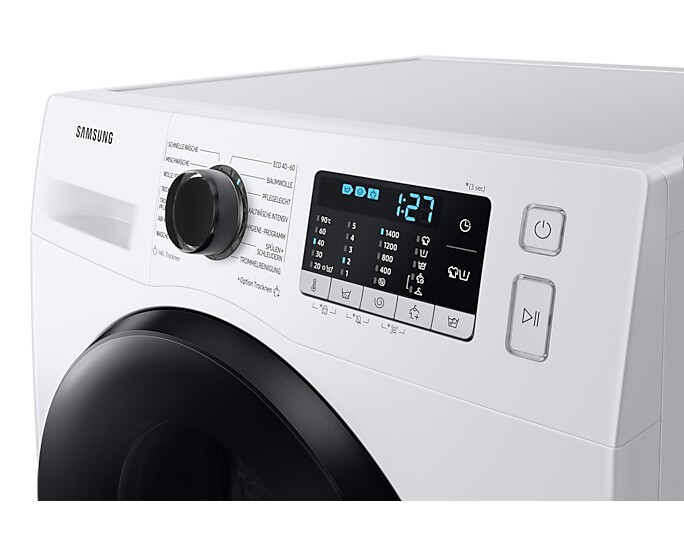 Samsung WD81TA049BE/EG, Frontlader, Freistehend, Weiß, Links, Schwarz, Tasten, Drehregler