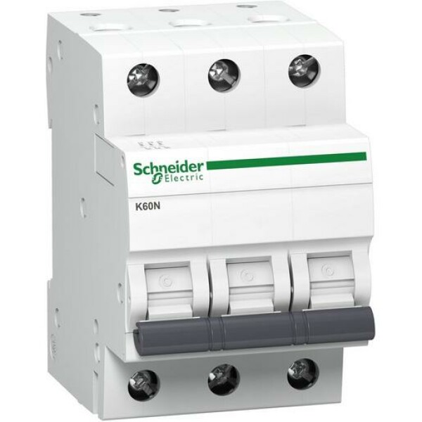 Leitungsschutzschalter K60N 3p, 20A, C Char, 6kA. Anw. der Leistungsschalter: Verteilung - Baureihe: Acti 9 - Produkt oder Komponententyp: Leistungsschalter - Kurzbezeichnung des Geräts: K60N - Netzwerktyp: AC - Technologie der Auslöseeinheit: thermomagnetisch - Unterbrechungskapazität: 6000 A Icn gemäß EN 60898-1 - 400 V AC 50/60 Hz, 6000 A Icn gemäß IEC 60898-1 - 400 V AC 50/60 Hz - Nutzungskategorie: Kategorie A gemäß EN 60947-2, Kategorie A gemäß IEC 60947-2 - Eignung für Isolation: ja gemäß EN 60947-2, ja gemäß IEC 60947-2.