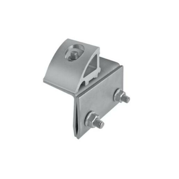 Blechfalzklemme mit vormontiertem Schienenanschluss ohne Kleinteile (wie z.B. Muttern, Schrauben, etc.) zur schnellen und einfachen Montage des Trägerprofils auf Blechfalzdächern.