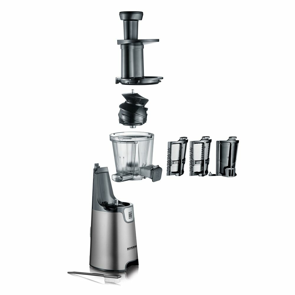 als beim herkömmlichen Entsaften. Bei maximalen Anwendungsmöglichkeiten, wie leckere Obst-und Gemüsesäfte, gesundes Sorbet / Eis, frische Marmelade, Fruchtschorlen, passierte Tomaten, werden mit dem ES 3571Slow Juicer perfekteErgebnisse erzielt. Das Easy-Clean Konzept sorgt, dank weniger Einzelteilen und schmalerem Mikrosieb als bei herkömmlichen Slow Juicern, für eine einfachere Reinigung und den Zusammenbau. Der praktische Einfüllschacht vereinfacht die Zugabe von Obst und Gemüse. Zum Lieferumfang des ES 3571 Slow Juicer gehören 2 Siebeinsätze mit feiner und grober Maschung und zusätzlicher Frozen-Fruits-Aufsatz und eine Reinigungsbürste. Leckere und gesunde Rezepte können jederzeit über einen QR Code abgerufen werden.