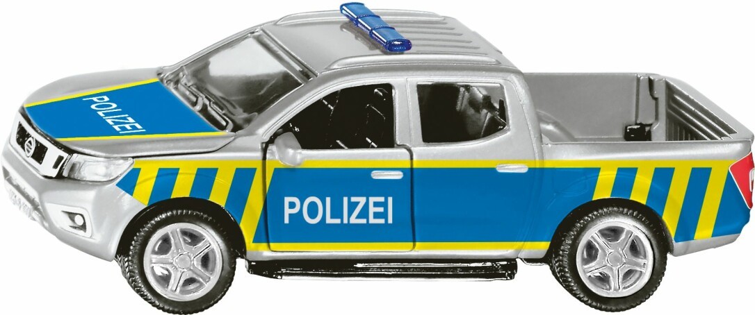 Er kann. Sie kann. Und auch die Polizei setzt auf Nissan. Der bekannte Nissan Pick-up ist in Europa ein Symbol für Zuverlässigkeit und technische Innovation. Jetzt macht siku ihn als Miniatur unvergesslich: Im Maßstab 1:50 erscheint der kraftvolle Pick-up im markanten Polizei-Look. Mit einer Karosserie aus robustem Metall und beweglichen Türen, Motorhaube und Heckklappe bietet das Modell eine authentische Detailtreue. Gummierte Reifen auf glänzenden, Silbernen Felgen sorgen nicht nur für einen eindrucksvollen Auftritt, sondern auch für exzellenten Grip bereit für jedes Terrain im Kinderzimmer-Einsatz.