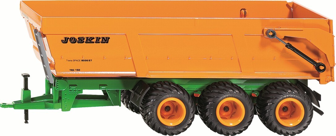 Detaillierter Muldenkipper der Marke Joskin zum Anhängen an alle SIKU Spielzeugfahrzeuge und -traktoren im Maßstab 1:32 - Umfangreiche Funktionen: Kippbare Mulde mit zu öffnender Heckklappe, Einziehbare Stütze zum selbstständigen Stand - Hohe Stabilität: Fahrgestell aus Metall, Mulde aus robustem Kunststoff, Sehr gute Rolleigenschaften dank voluminöser Luftreifen aus Gummi - Ideal als Geschenk für große und kleine Landwirtschaftsfans geeignet, Perfekte Ergänzung zu SIKU FARMER Traktoren im gleichen Maßstab - Lieferumfang: 1x SIKU 2892 Joskin Dreiachs-Muldenkipper, Maßstab: 1:32, Material: Metall/Kunststoff, Abmessungen: 24,5 x 8,8 x 10,7 cm, Gewicht: 0,49 kg, Farbe: Orange, Serie: SIKU FARMER