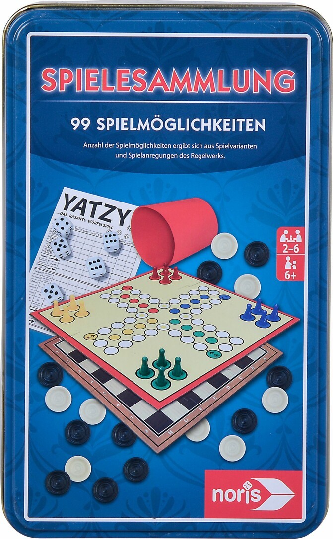 Ein attraktive und handliche Spielesammlung mit vielen Spiele- Klassikern in der Metall-Box. Auf engstem Raum sind hier zusammensteckbare Spielpläne und viel Spielmaterial untergebracht, so dass man u.a. folgende beliebte Klassiker spielen kann: Nur-keine-Aufregung, Dame, Wolf & Schafe, Zehntausend, Yatzy, Chicago, Las Vegas, Max, Verflixte 66, Ramba Zamba, Lügenmächen, Sechsundsechzig, Craps, Glückshaus, Glücksrad, Stadt- Land-Fluss und viele mehr. Durch das handliche, kompakte Format ist diese Spielesammlung ideal für die Reise und unterwegs. Für 2-6 Spieler im Alter ab 6 Jahren.