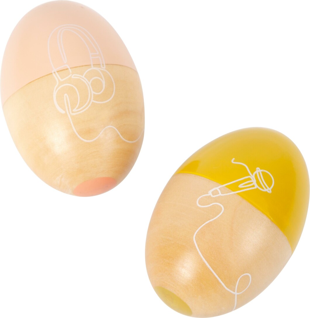 Schütteln, rasseln, musizieren: Mit diesen Musik- und Rasseleiern gibt’s was auf die Ohren! Jedes der fünf Schütteleier aus robustem Vollholz macht ein anderes Geräusch und sorgt für jede Menge Rhythmik-Spaß. Die formschönen Eier lassen sich von Kinderhänden besonders gut greifen. Und auch optisch sind die Musikeier mit ihrer Kombination aus naturbelassenem Holz und modernen Kontrastfarben ein Hingucker für die Kinderzimmer-Band! Der absolute Hit für kleine Geräuschentdecker! Musik-Schütteleier trainieren neben der akustischen Wahrnehmung auch Rhythmus- und Taktgefühl sowie die Hand-Augen-Koordination. Ideal für die musikalische Früherziehung!
